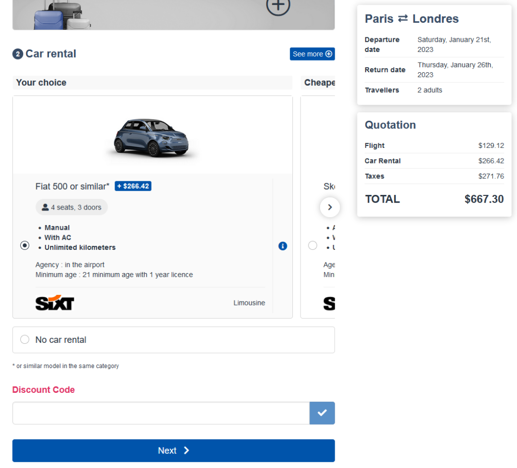 Nous avons amélioré la connectivité avec BSP Auto pour permettre une meilleure expérience utilisateur et proposer ainsi dans le processus de réservation des horaires de début de location et de retour de véhicules plus cohérents avec les horaires de départ et d’arrivée des vols réservés par le client.