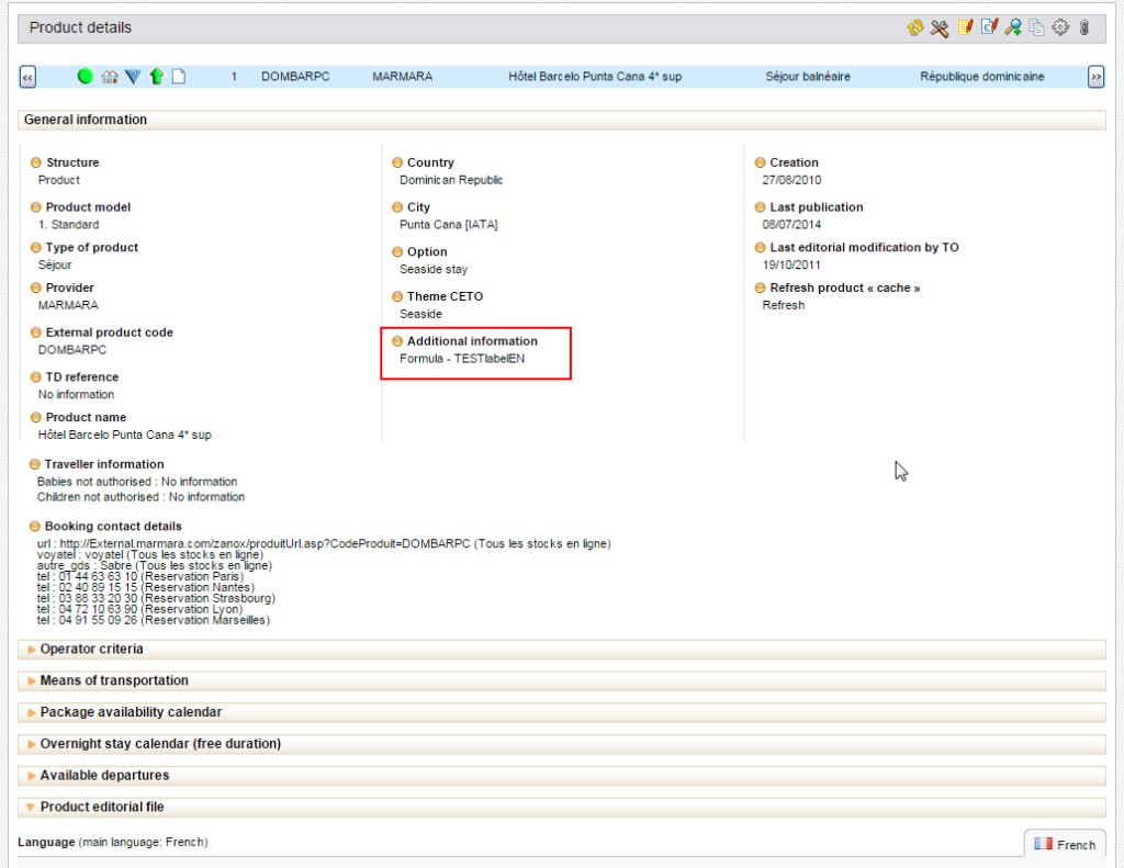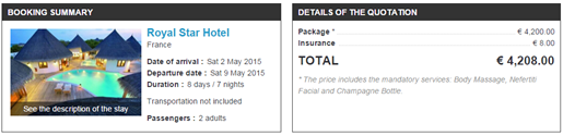 In addition, the “recalculate”‘ buttons that sometimes appeared during the booking process in the preceding version (when a producer could not get a price for all of the possible choices at once) no longer exist. Now the “recalculation” is automatic if the external producer’s system can handle it. If this is not the case, it is possible to deactivate the choices that require an automatic “recalculation” separately for each producer.