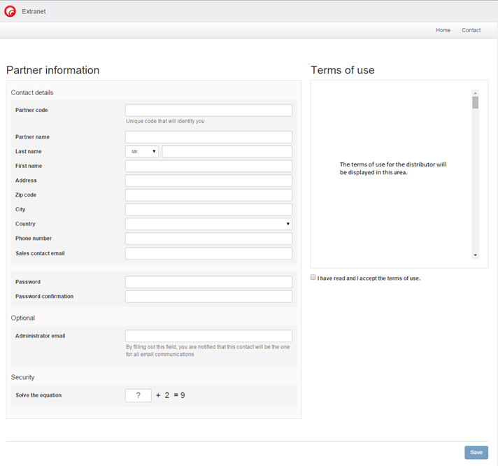 Registration page for the hotel operator extranet