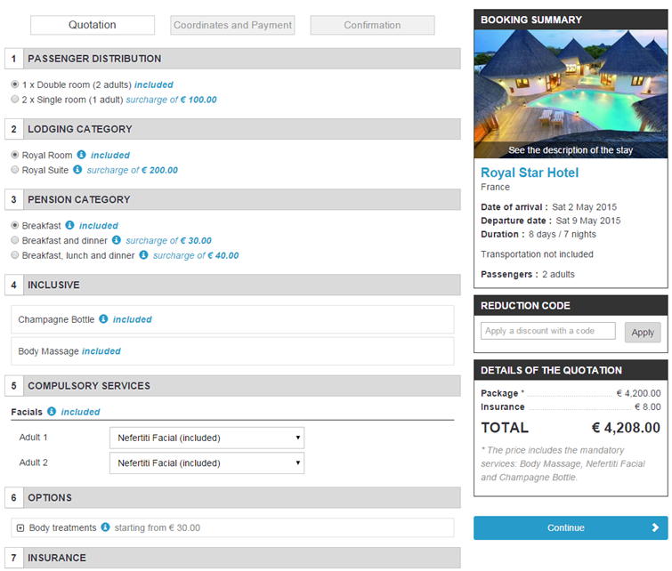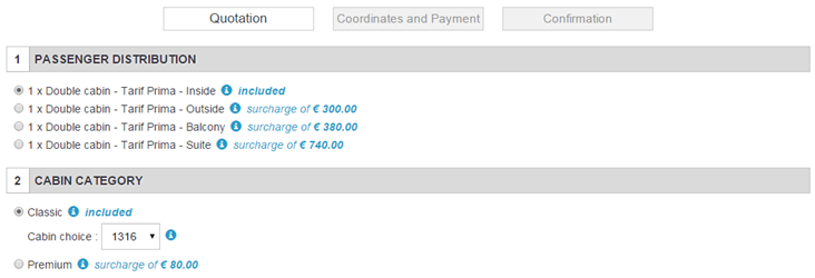 The ergonomic design of the booking process has been changed. In particular, there have been several changes to the quote stage to optimise the user experience. The optimised process for desktops and tablets is also compatible with mobiles. Specific work for mobiles will be completed in the coming months.