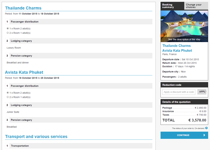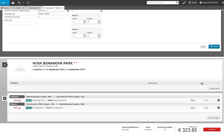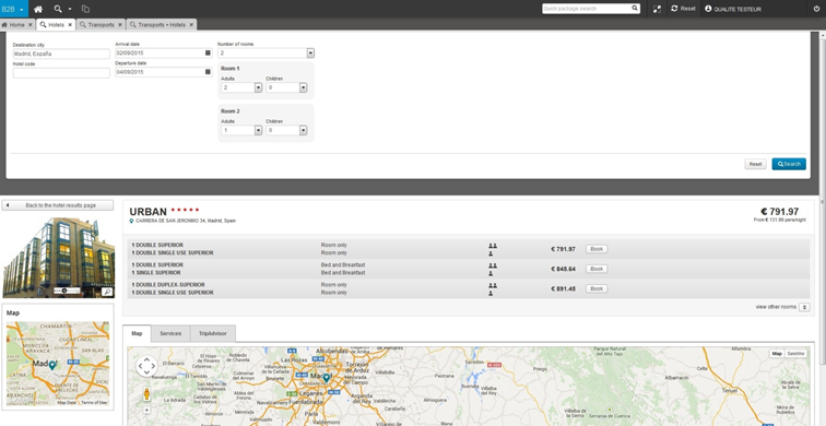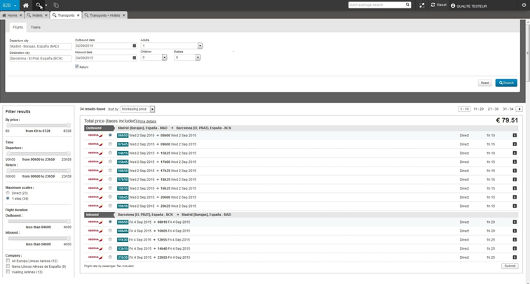 However, unlike the packages search (and pre-packages search) which uses a cache system, the search engines for hotel processes, transport and dynamic packages process information in real time. A specific “wait” message has been added, to give the user an idea of the real search duration.