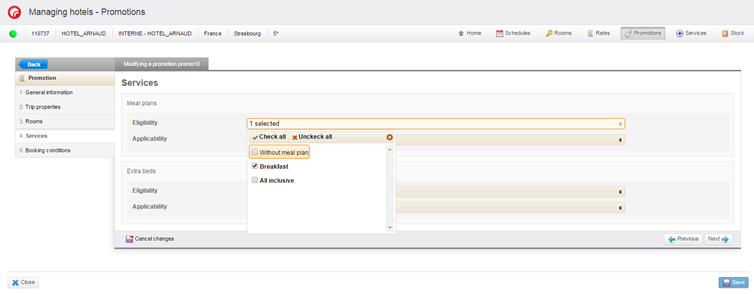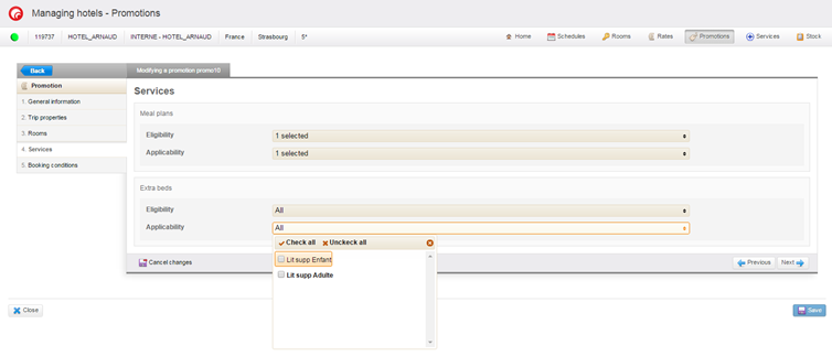 This section lets you then choose whether to apply the costs or reductions to the hotel, flight or train portion.