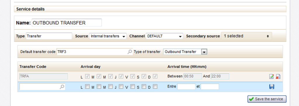 If the arrival days/times do not correspond to the constraints specified in the list of alternative transfers, the default transfer will be suggested.