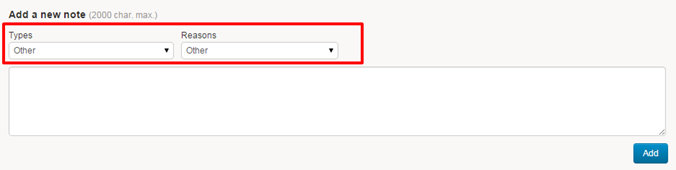 New “Types” and “Reasons” fields during note creation.