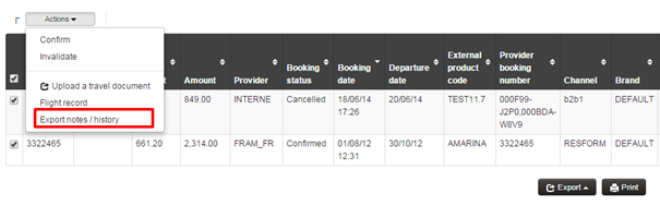 Moreover, it is now possible to export the complete history (CSV) of one or more folders from the action list. This export will contain one line per folder and per note, and will consist of the following columns :