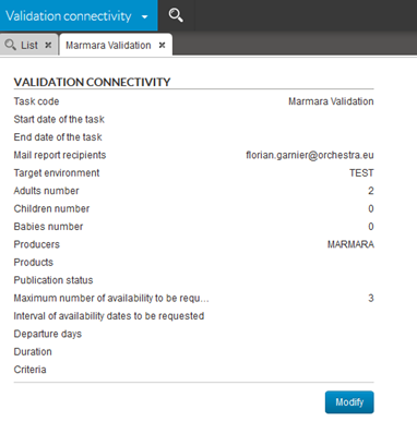 A new “universe” can now be activated in the main menu: “Connectivity validation”. This new module can be used by distributors and producers.