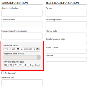You can also activate a new search criterion where departures on specific days of the week can be chosen. For example, these tick boxes can be used to search for all departures available on Saturdays and Sundays within a given period.