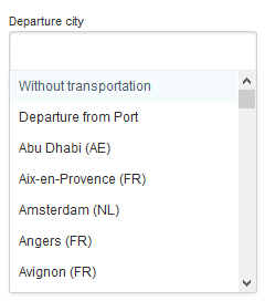 - In the list of departure cities, we display the country’s ISO code. The default ISO code “XX” has been removed from the alternatives “Without transportation” and “Departure from port”.