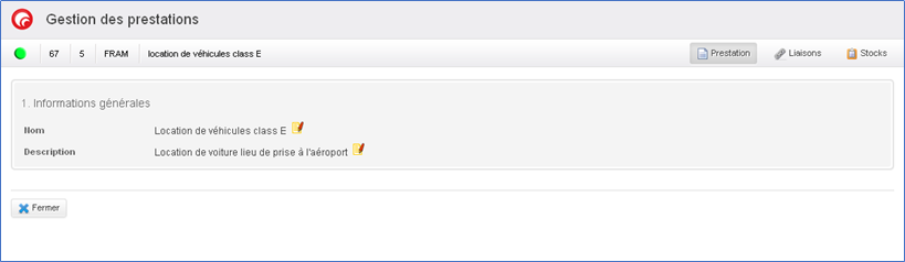 Une fois la prestation créée, il est possible de la rechercher et de consulter les informations liées.