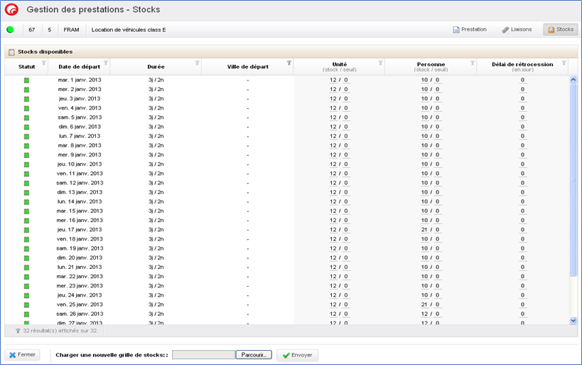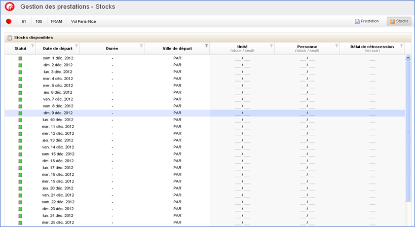Des stocks peuvent être enregistrés sur la prestation sélectionnée :