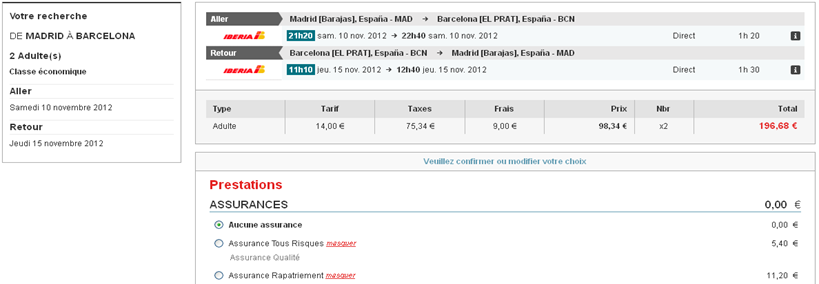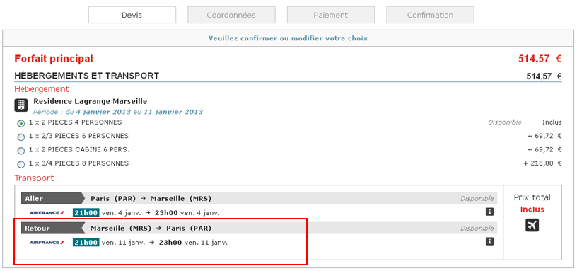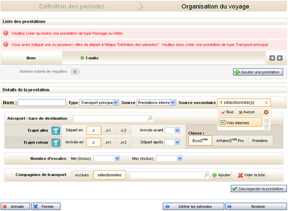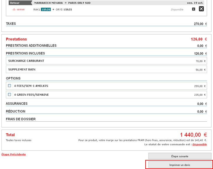 Une fois définie et liée à un package la prestation annexe remonte sur le processus de vente package.