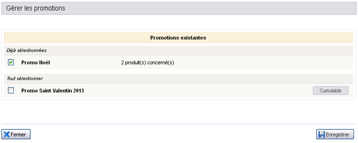 Une fois les produits associés aux offres, les tarifs sont automatiquement modifiés. Si plusieurs opérations promotionnelles s’appliquent sur une même disponibilité d’un produit donné :