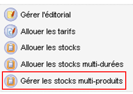 La consultation des stocks se fait en sélectionnant un produit pour lequel des stocks partagés ont été enregistrés et en cliquant sur l’action « Gérer les stocks multi-produits ».