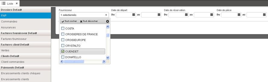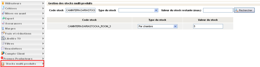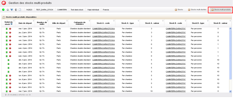 L’onglet de gestion des stocks multi-produits s’ouvre et affiche le niveau de stocks sur le produit sélectionné.