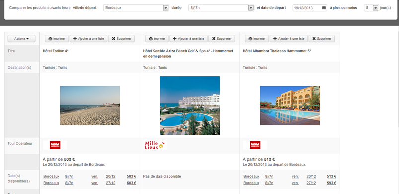 Les fiches produits peuvent être comparées entre elles via le comparateur. Il est possible d’affiner la liste des dates que l’on souhaite comparer via un filtre en haut du comparateur.