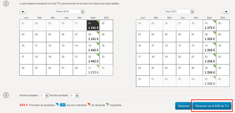 Tous les paramètres choisis (produit, date, ville de départ, durée, nombre de voyageurs, âge des enfants) sont automatiquement transmis et pré-remplis sur le B2B du producteur (si celui-ci le permet).