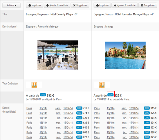 harmonisée sur le B2B. Une nouvelle icône indiquant les prix GDS est désormais