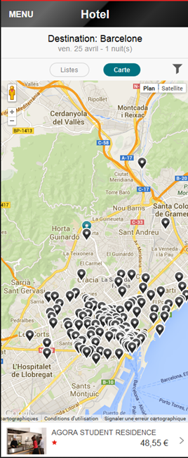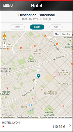 Comme dans le processus hôtel, il est possible de visualiser la position géographique des hôtels.
