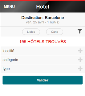 Possibilité de filtrer les résultats selon 3 critères : la catégorie (nombre d’étoiles), le type d’hôtel et la localité.