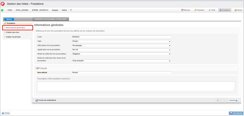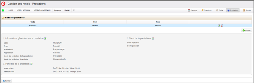 Attention : dans cette version, seules les pensions sont prises en charges, dans l’outil d’administration comme dans le processus de vente hôtel.