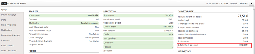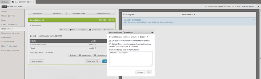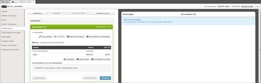 Une fois sauvegardé, un récapitulatif de la prestation est affiché.