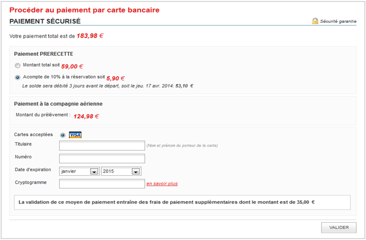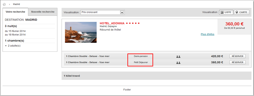 Les prestations ainsi créées seront visualisables et réservables dans le processus de réservation Hôtel et Hôtel+Vol.