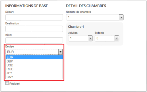 Ceci permet aux catalogues de choisir dynamiquement la devise d’affichage plutôt que ce soit une configuration du processus de réservation.