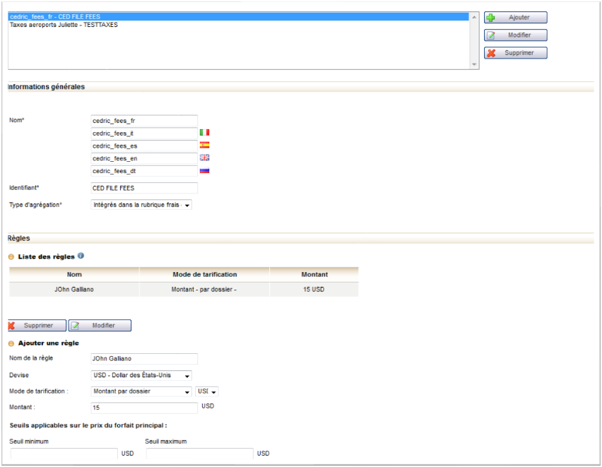 Il est maintenant possible de saisir des prix par devise dans la gestion des assurances et des frais de dossier.