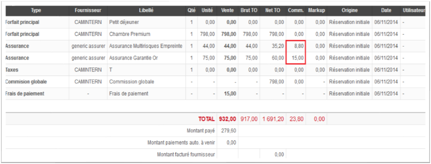 Le distributeur peut maintenant configurer une valeur de commission pour les assurances internes.