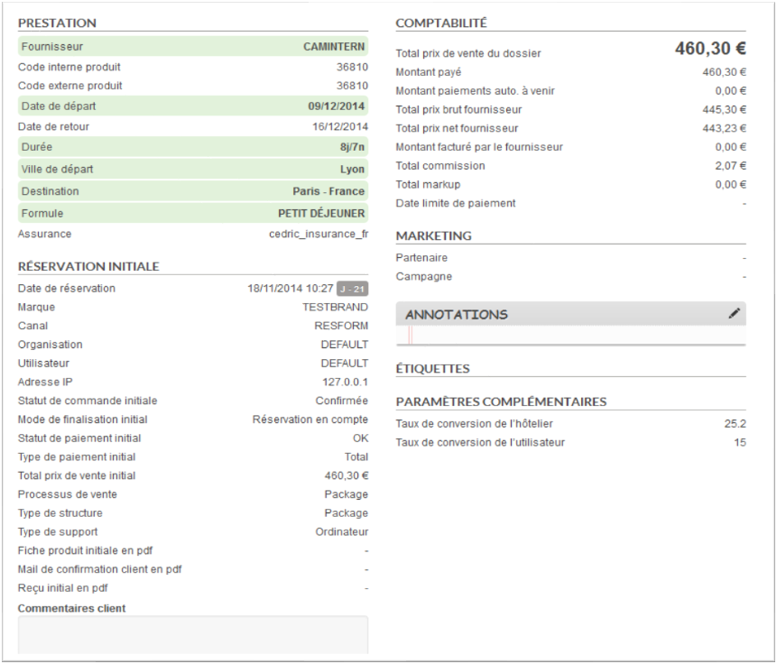 Lors du processus de réservation, il est possible de conserver certaines données importantes telles que les taux de conversion de l’hôtelier et de l’utilisateur au moment de la réservation.