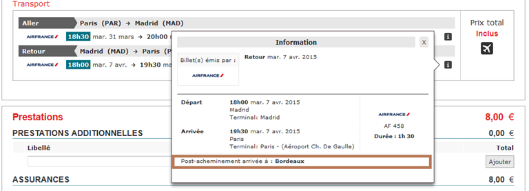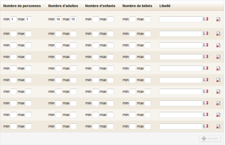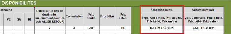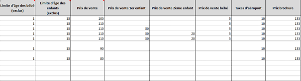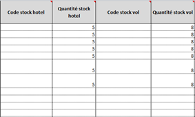 Enfin, les colonnes de stocks utilisent les stocks mutualisés comme la grille « multi-produits » actuelle. Cependant, seul un stock de type hébergement et un stock de type vol peuvent être saisis.