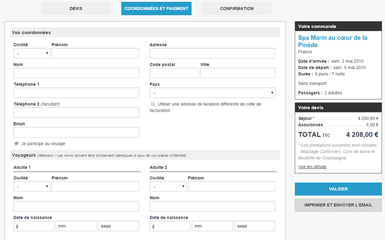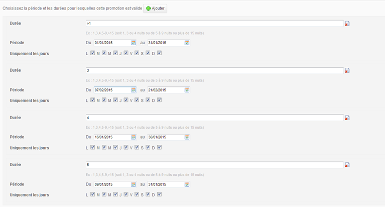 de saisir les différentes combinaisons de chambres pour chaque date. Une liste