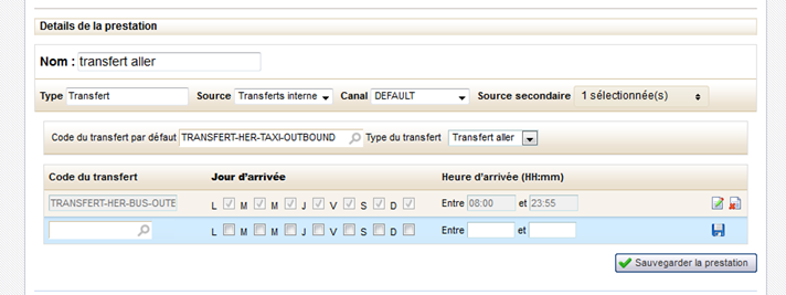 Si les jours/horaires d’arrivée du vol ne correspondent à aucune des contraintes spécifiées dans la liste des transferts alternatifs, c’est le transfert par défaut qui sera proposé.