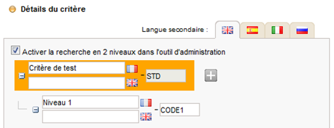 Lors de la définition d’un critère distributeur dans la section « Configuration > Critères » de l’outil d’administration, il est maintenant possible d’activer une option permettant de présenter ce critère sous forme de deux select-box dans les différents onglets de recherche de l’outil d’administration.