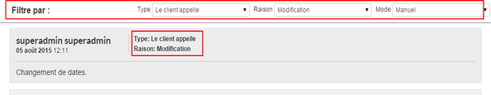 Nouveaux filtres des notes par « Type », « Raison » et « Mode ».
