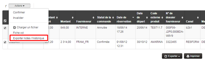 liste d’actions. Cet export contiendra une ligne par dossier et par note, et