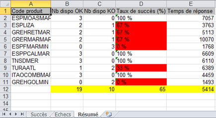 Un onglet « Echecs » qui contient la liste de toutes les disponibilités KO,