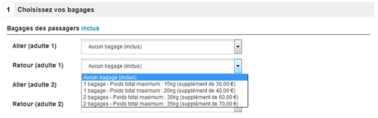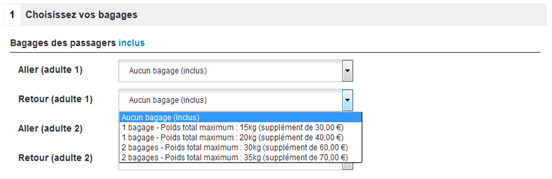 des bagages additionnels sont proposés pour EasyJet, Ryanair, Transavia et Air