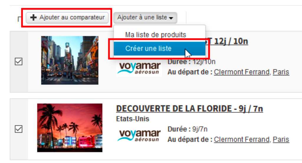 - La liste des boutons d’actions en haut du résultat de recherche devient un bouton simple lorsqu’il y a une seule action possible dans le menu (Par exemple « Ajouter au comparateur »).