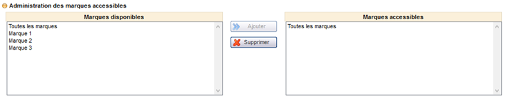 La première concerne l’administration des marques accessibles dans les « yields » du module « Gestion tarifaire ». Cette section permet de restreindre les droits des utilisateurs afin qu’ils ne puissent gérer qu’une marque précise.