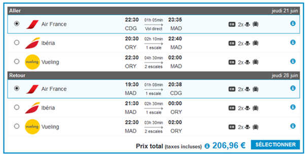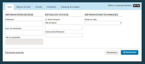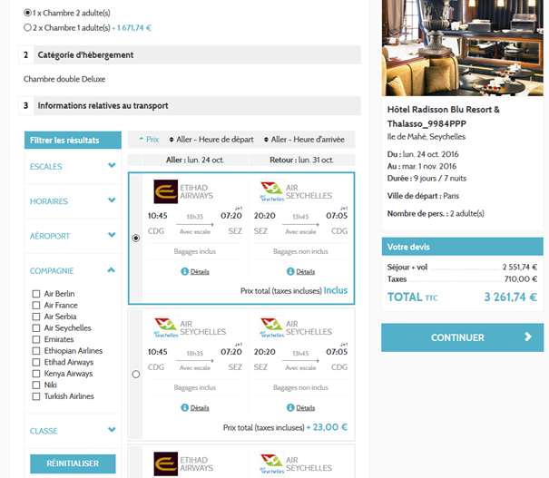 Ceci permet de proposer sur la page de devis un nombre d’alternatifs de chambres, de catégories, de pensions et de vols plus important. Ce système est compatible avec tous les producteurs dont les temps de réponses de leur API sont suffisamment courts