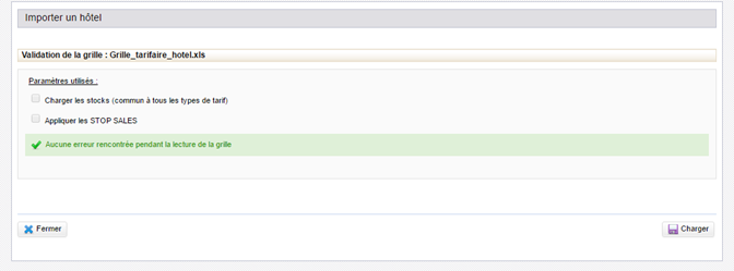 Si aucune erreur n’est détectée, un message correspondant est affiché et il suffit de cliquer sur le bouton « Charger » pour effectivement charger la grille dans l’outil d’administration.