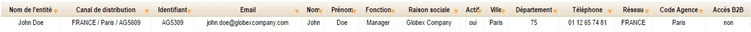L’affichage et l’ordre des colonnes dans le tableau de résultat sont configurables. Par défaut, les colonnes restent inchangées. Pour un accès plus rapide au profil d’un utilisateur, un double clic sur une ligne du tableau ouvre directement la fenêtre d’édition du profil correspondant.