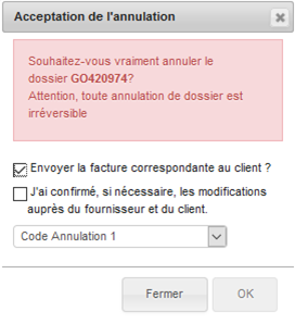Un message d’avertissement a été ajouté afin de mettre plus en évidence le caractère définitif de l’annulation d’un dossier dans le Back-office.