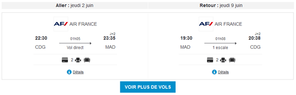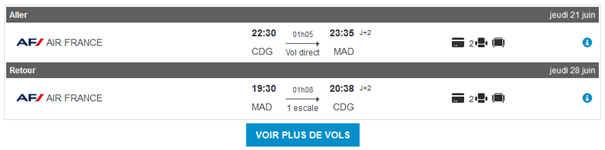 limité de vols sera affiché par défaut, puis un bouton permettra d’afficher