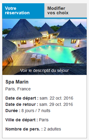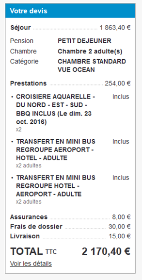 au sein de la page de devis du processus de réservation packages. Un nombre