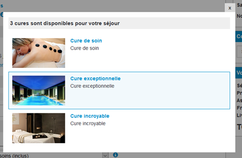 L’affichage des info-bulles des options groupées (cures par exemple) a été amélioré. Le descriptif de l’option sélectionnée peut maintenant être mis en surbrillance afin de faciliter la comparaison avec les autres options alternatives.