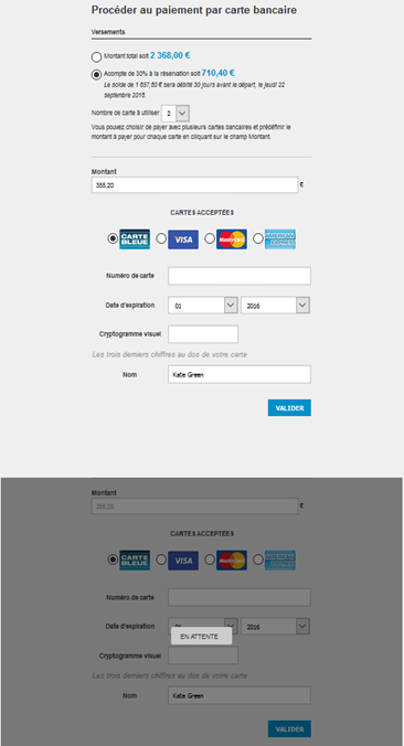 de réservation affichera alors deux formulaires, le deuxième étant grisé tant