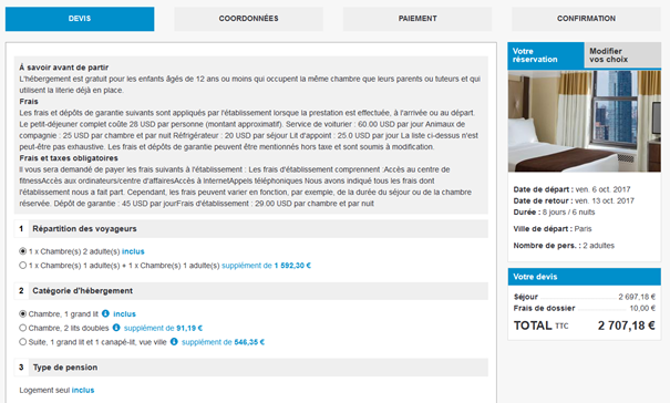 La grille des prestations internes a été enrichie afin de pouvoir vendre ces prestations dans le processus de réservation « A la carte ». Il est désormais possible d’identifier une prestation avec son pays, sa ville et sa catégorie.