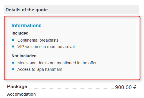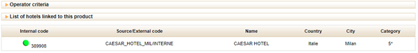 - Liste des hôtels liés aux produits disponibles dans la fiche produit,